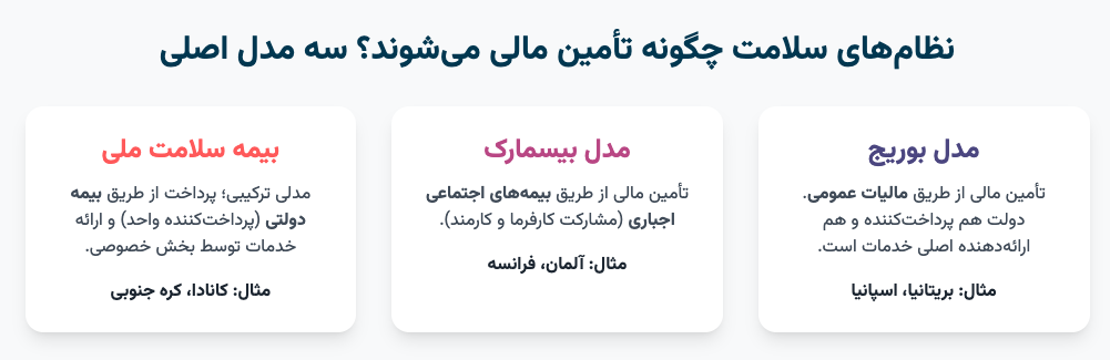 بخش ۳: مدلهای تأمین مالی سلامت در جهان: سه مدل اصلی